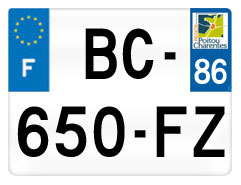 Plaque d'immatriculation MOTO CYCLO Siv en plexiglas ®: 86 Vienne