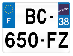 Plaque d'immatriculation MOTO CYCLO Siv en plexiglas ®: 38 Isère