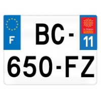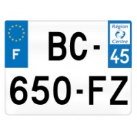 - Impression sur film haute densité - Traitement anti UV - Sans publicité - Homologation TPPR &TPMR Utac - Conforme à la réglementation SIV 2009 et SIV 2015 - Texte personnalisé en bas de plaque OFFERT - LOGOS de région 1ère Génération